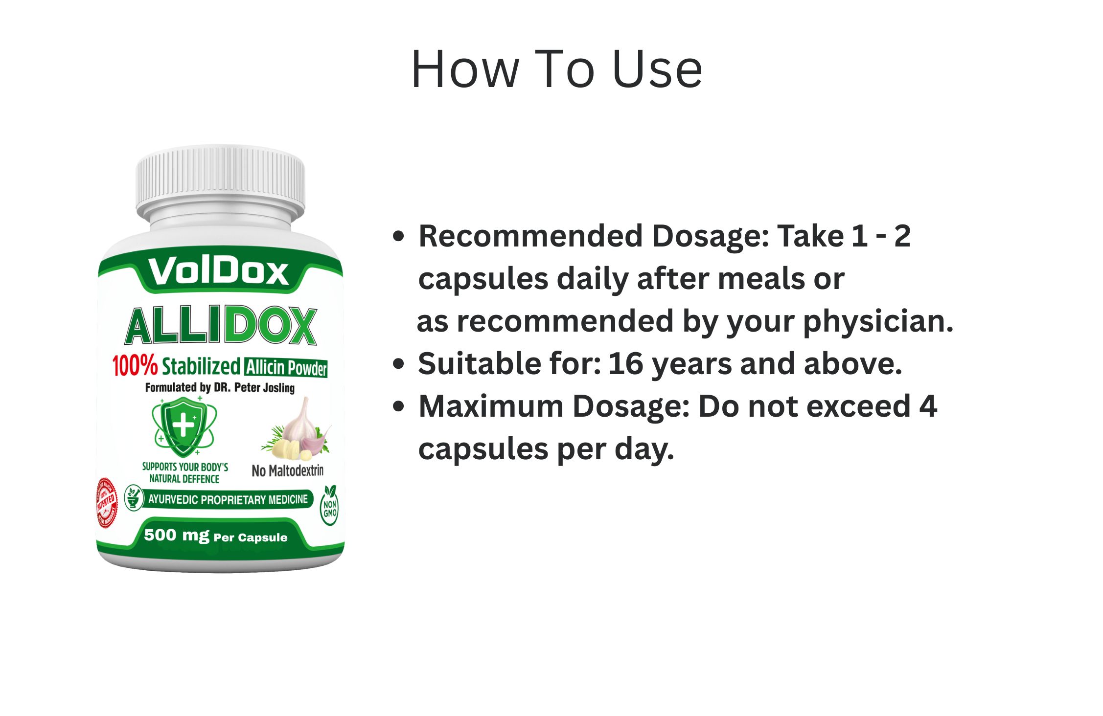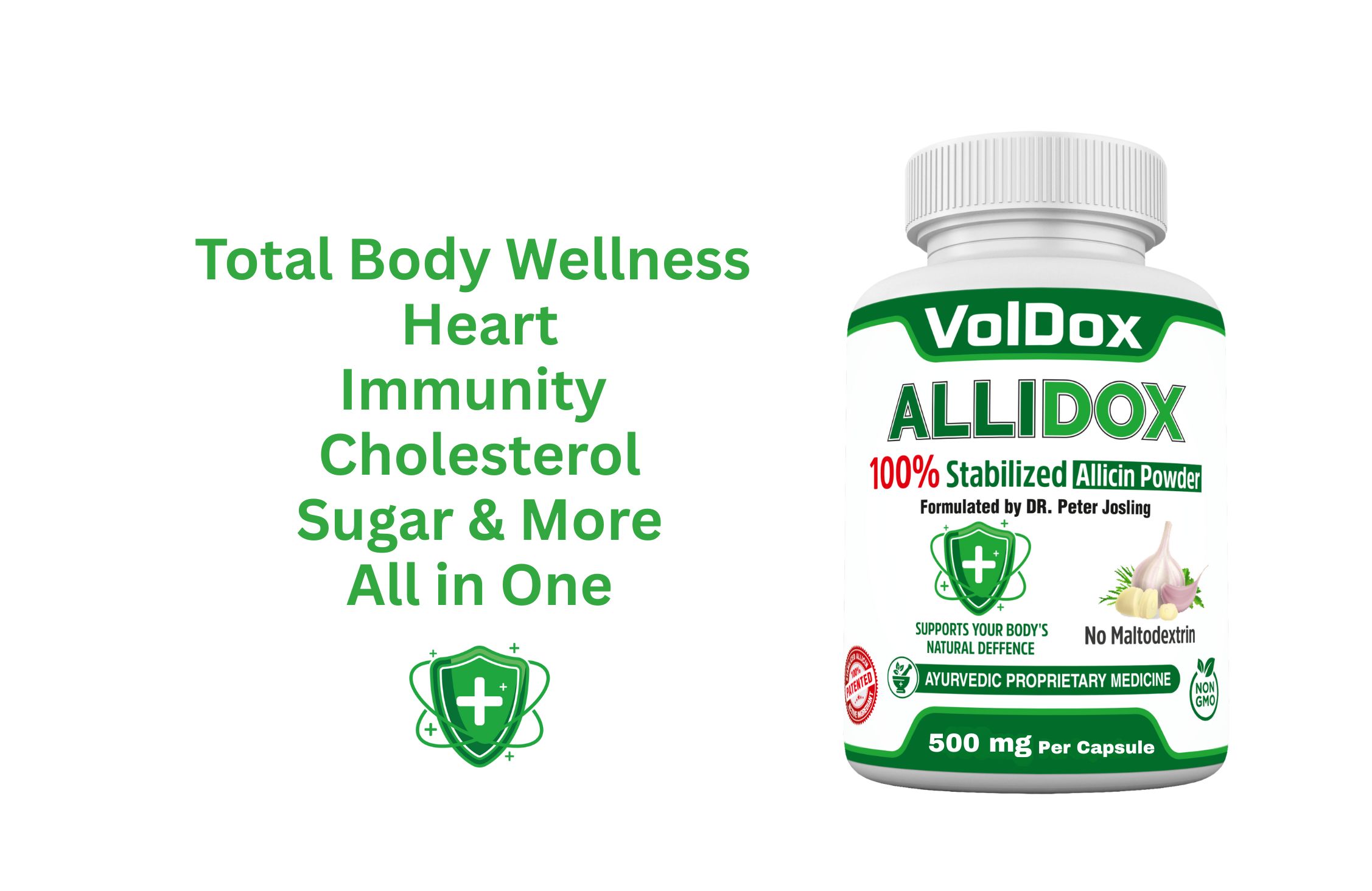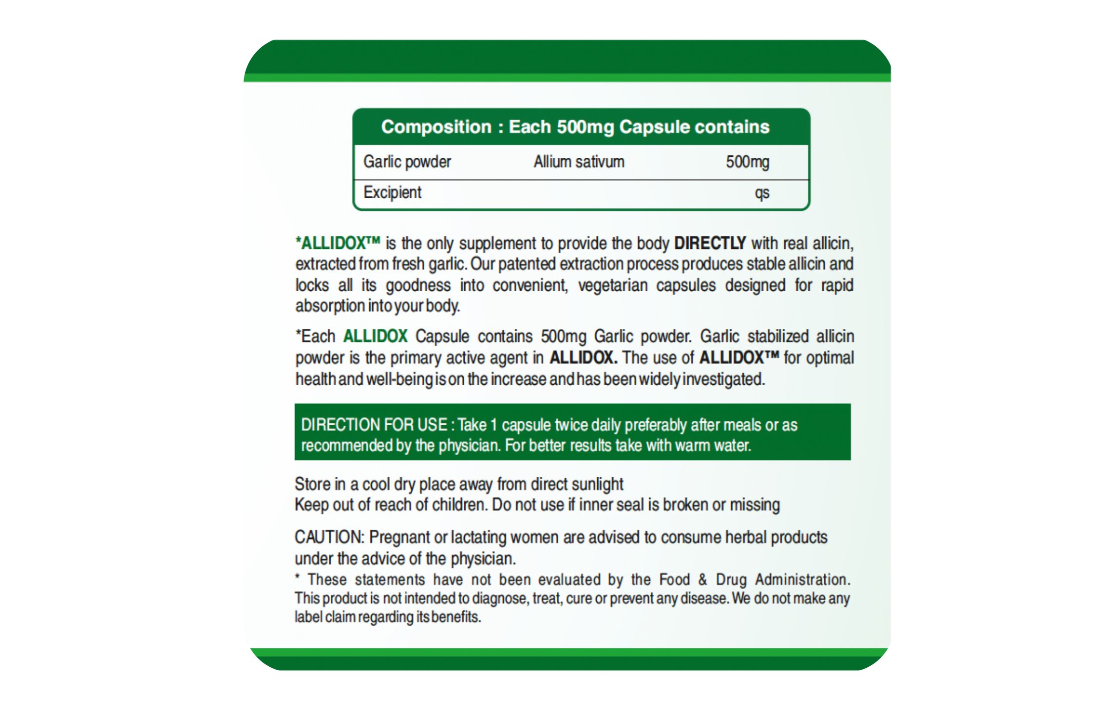 Boost your immunity and overall wellness naturally with ALLIDOX – a high-potency Ayurvedic Proprietary Medicine formulated with 100% stabilized Allicin, the most powerful and bioactive compound found in garlic. Each capsule delivers the strength of over 360 raw garlic cloves—without the strong aftertaste.